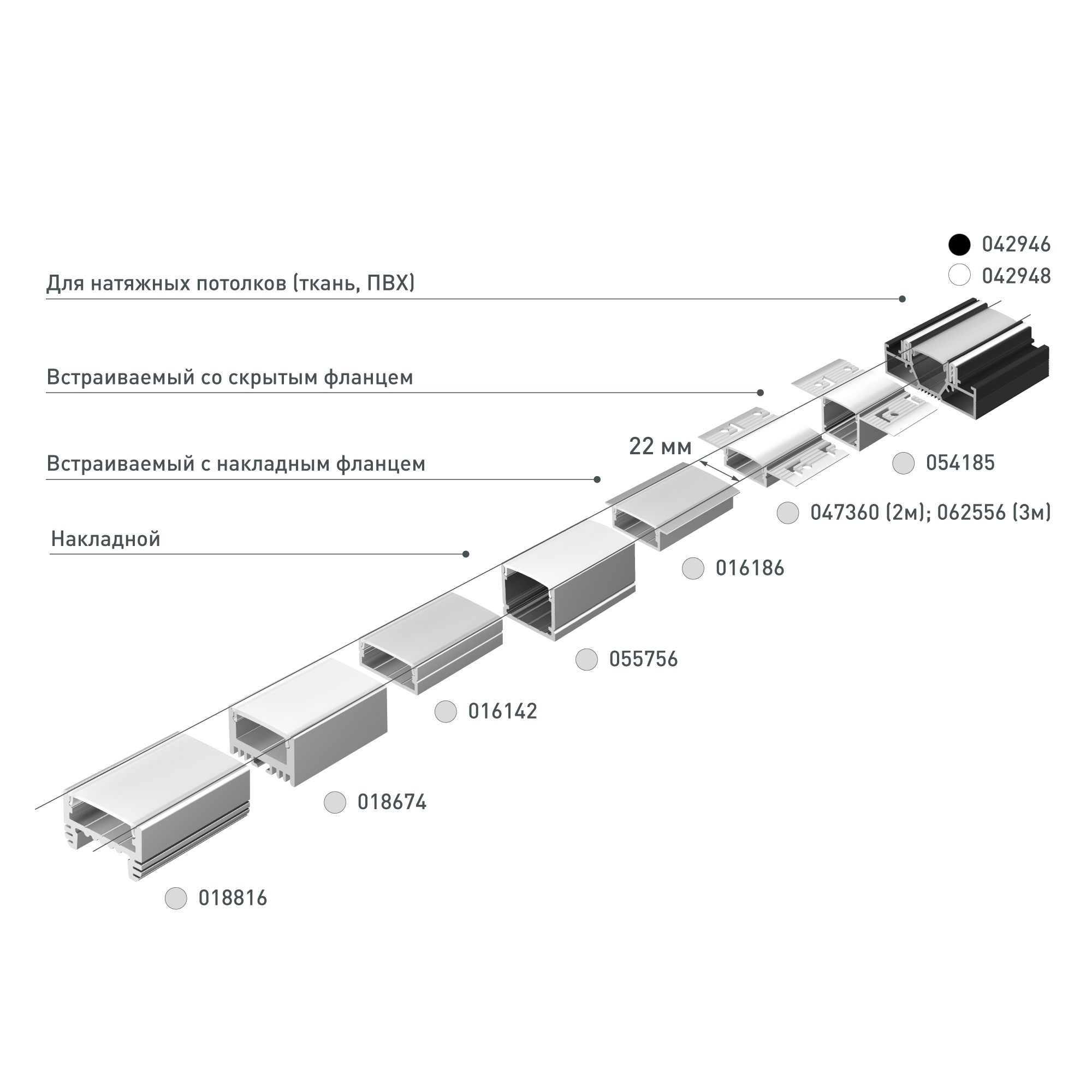 Экраны, заглушки и другие аксессуары не включены в комплект и приобретаются отдельно. Цена указана за 1 метр профиля.