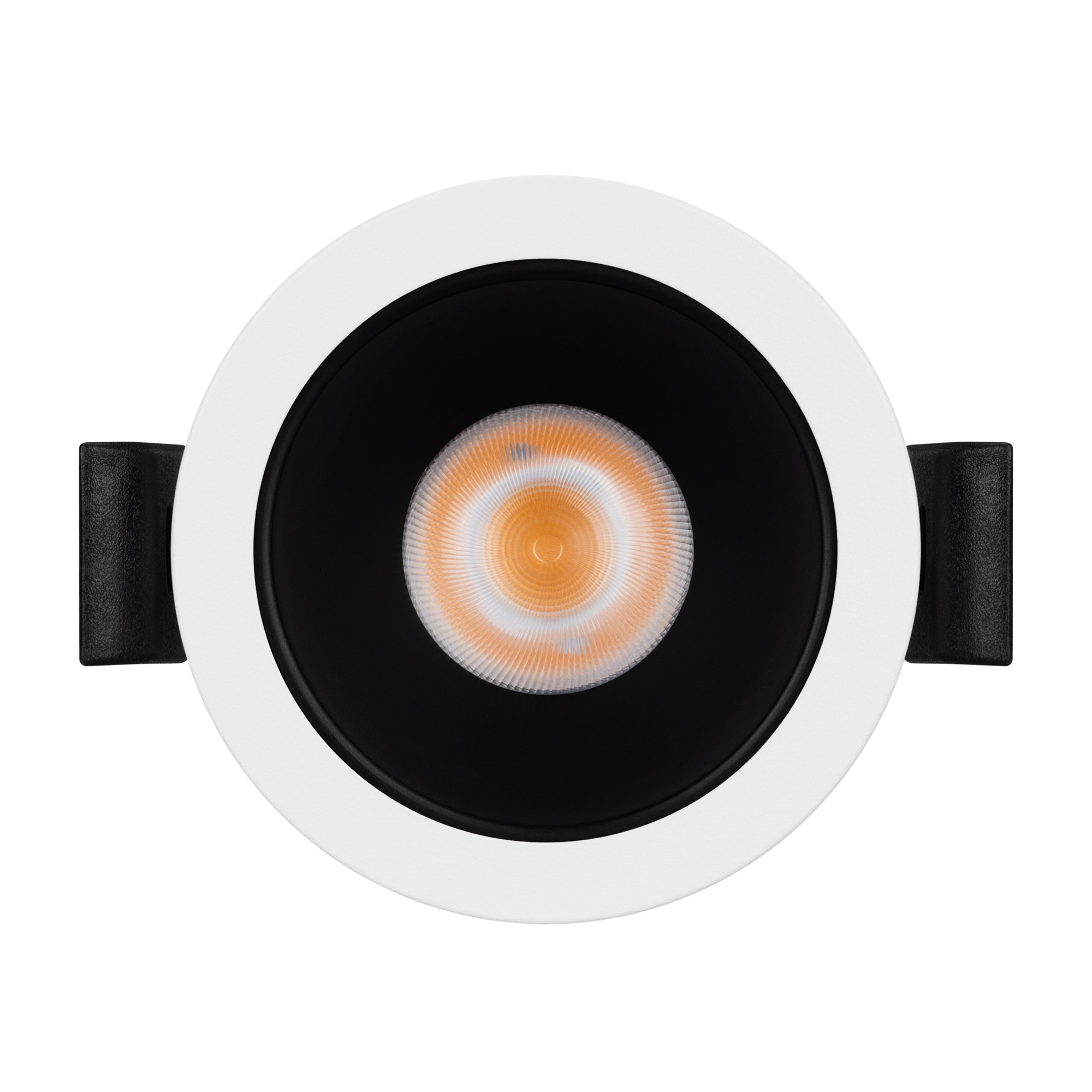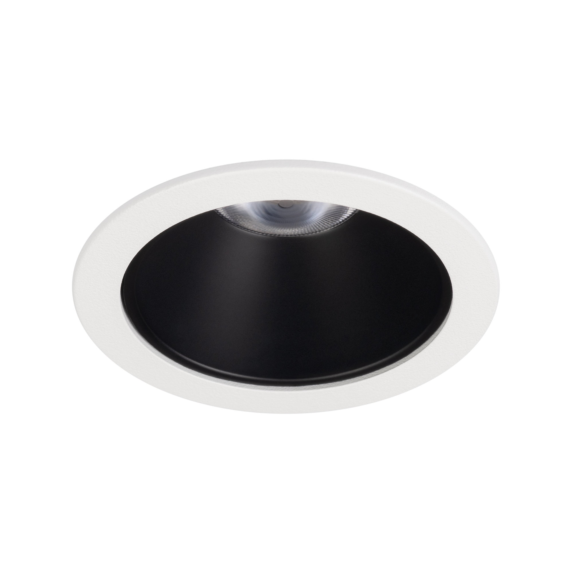 Встраиваемый светильник даунлайт. Мощность 10 Вт, св. поток 816 лм, 76 лм/Вт, теплый 3000 K, CRI>90, UGR<16, угол 35°, напряжение питания 230 В. Белый круглый корпус из алюминия, черный МАТОВЫЙ отражатель из PMMA, степень защиты IP20. Размер: диаметр 58 мм, высота 68 мм. Монтаж встраиваемый, установочное отверстие: диаметр 52 мм. Драйвер 20-40 В, 250 мА, пульсация <2%.