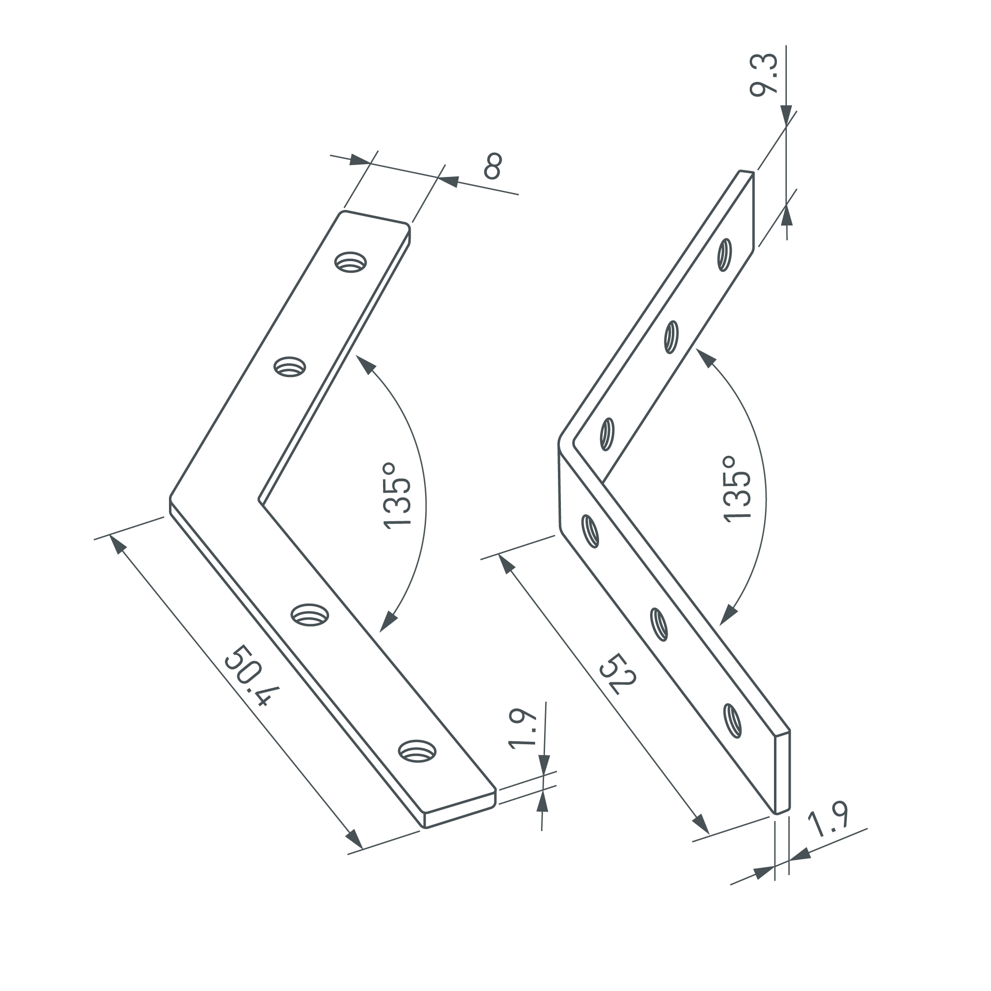 Коннекторы (4 шт. - два внутренних и два внешних) для соединения двух отрезков профилей LINE-6070 под углом 135° в разных плоскостях. Устанавливаются в паз, фиксируются идущими в комплекте винтами. Применяются при изготовлении светильников сложной геометрии.