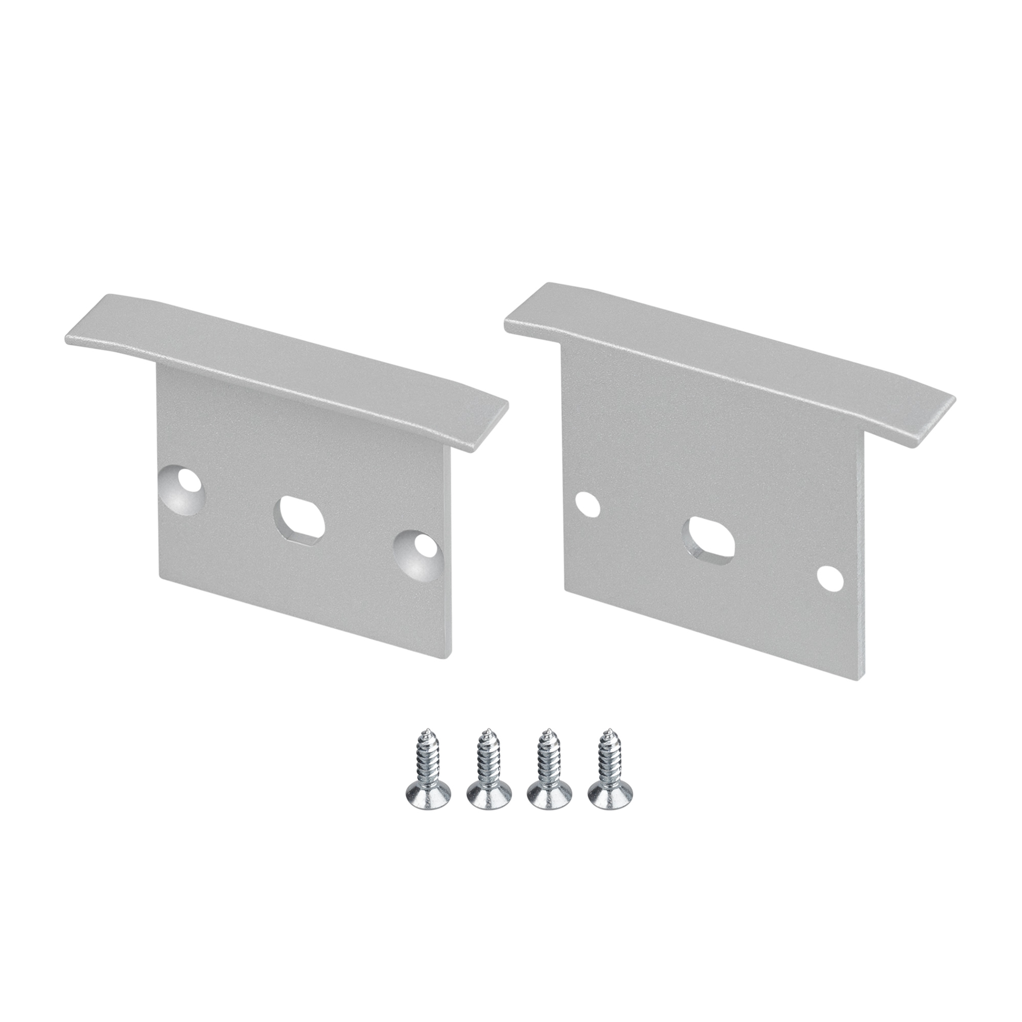 Пара заглушек с отверстием для профиля LINIA25-F серебристого цвета. Материал - алюминий. В комплекте: заглушка - 2 шт., винт - 4 шт. Цена за комплект.