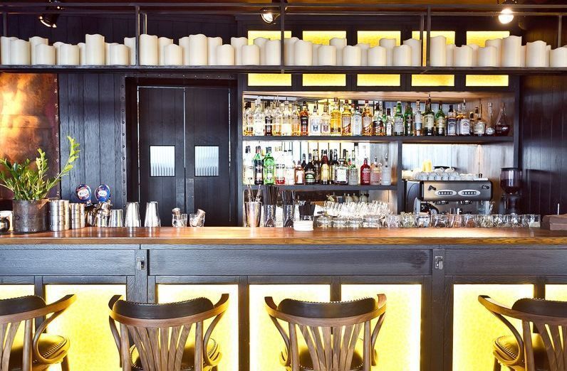 Была установлена светодиодная подсветка барной стойки, витражей, полок, ниш, витрин и других деталей интерьера.