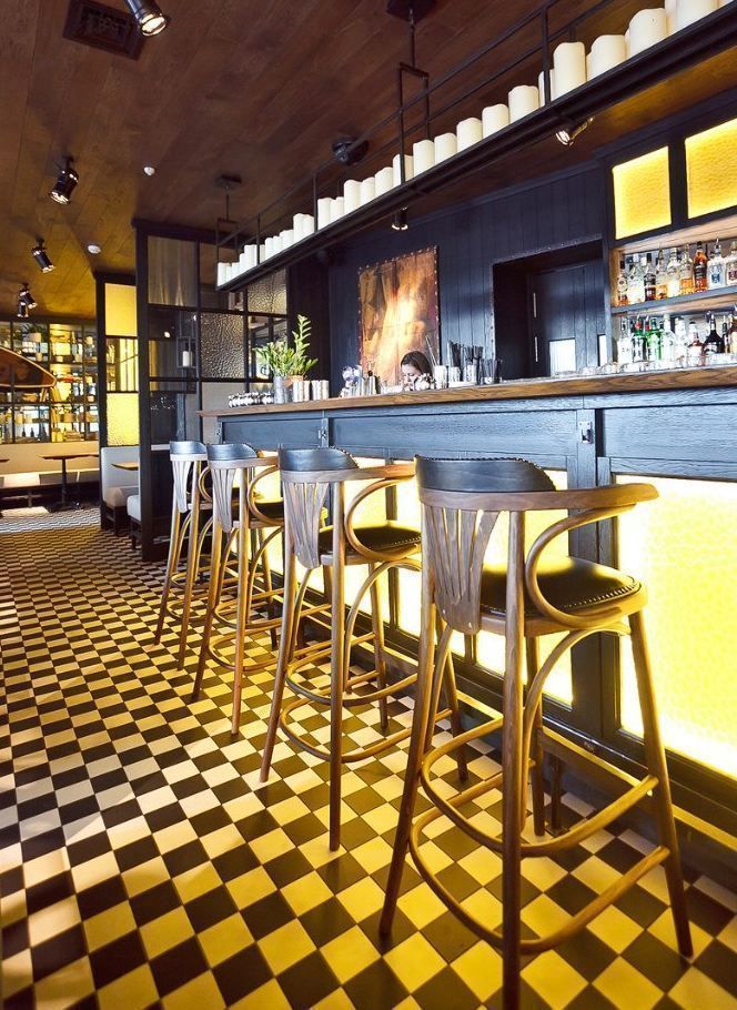 Декоративная и акцентная подсветка бара-ресторана "Solnce" («Солнце») на проспекте Добролюбова в Санкт-Петербурге. В подсветке интерьера использовалось светодиодное оборудование торговой марки